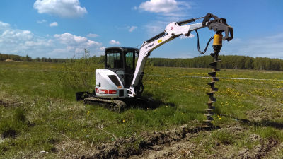 Бурение отверстий под сваи для фундамента, столбы или заборы.