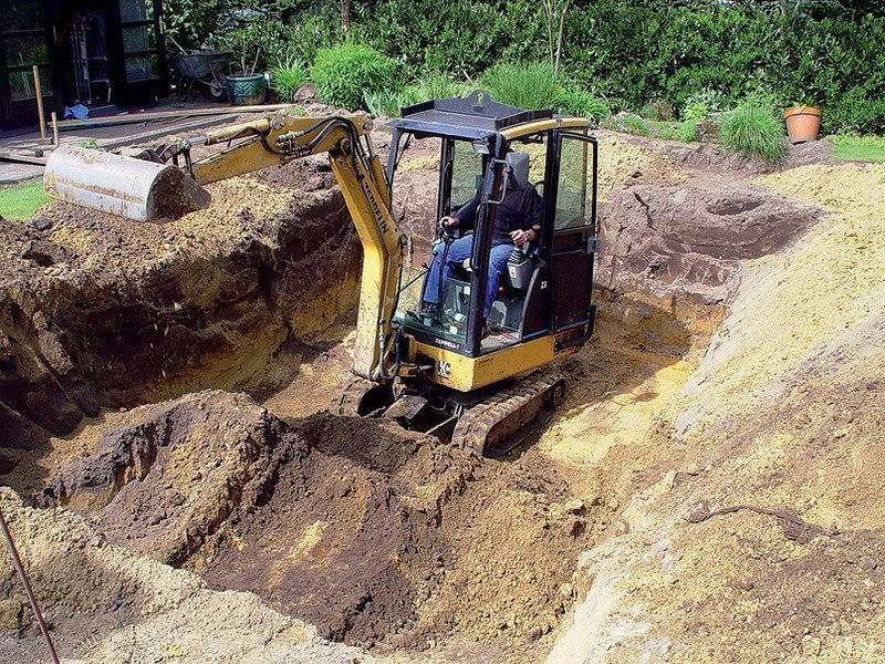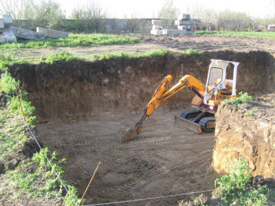 Копка котлованов под фундамент, пруд либо другой водоем.
