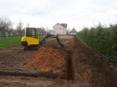 Рытье траншей под ленточный фундамент, водопровод, канализацию или кабеля.